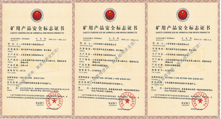 公司擁有整車煤安證46項,礦安證27項,零部件煤安證38項